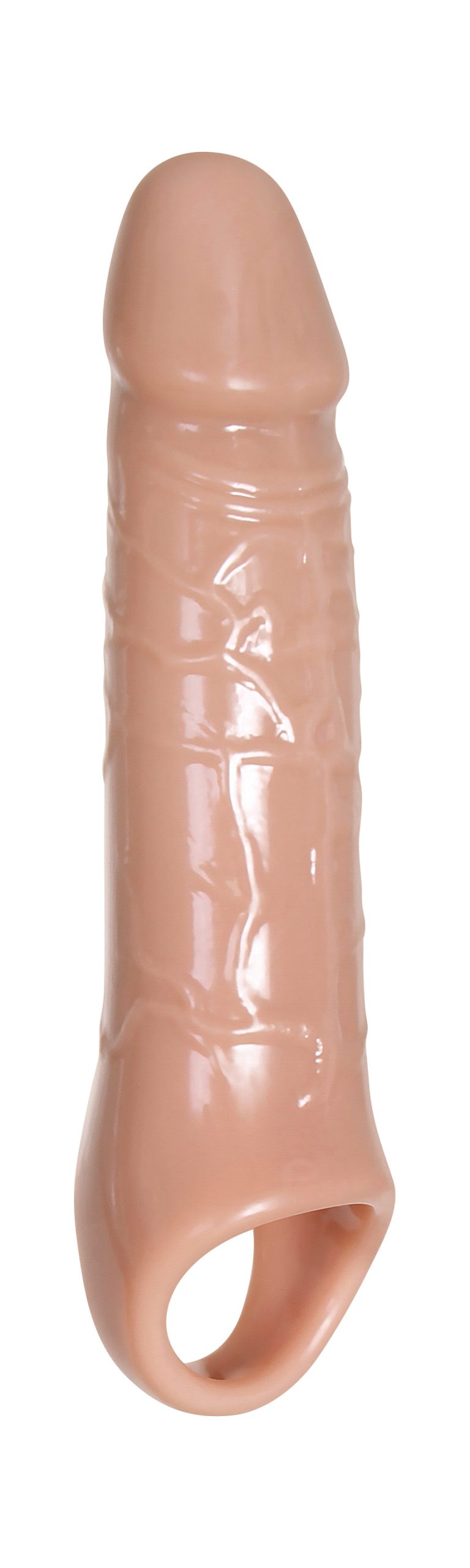 Add length & girth to your erection in an instant! You’ll be crowned with a solid 1.5″ thick head for a nice ‘n’ firm entry. Slide into this extension as the stretchy ball strap keeps your longer, thicker shaft in place for total control. Realistic veins hold onto lube with every thrust!