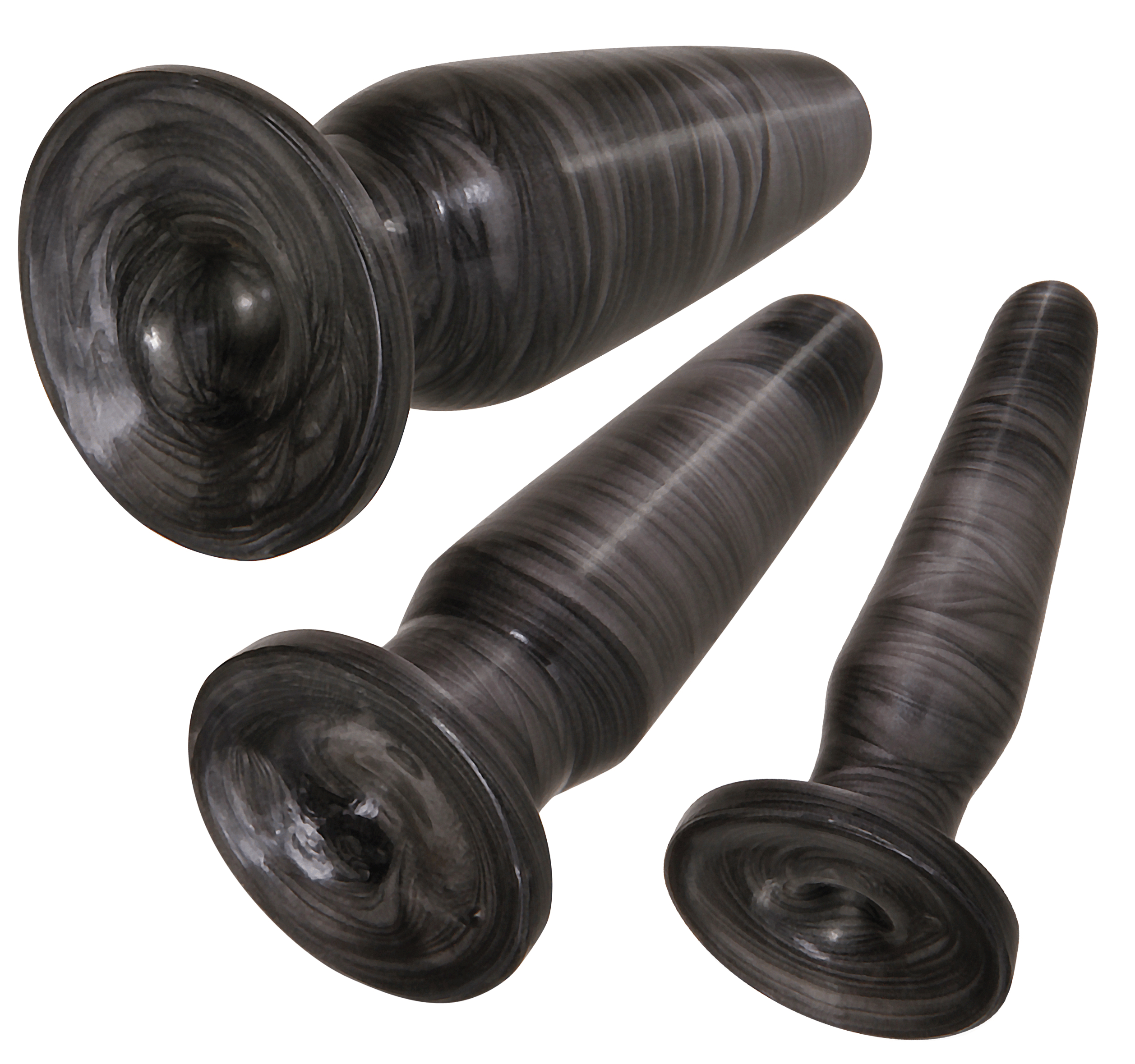 Send your booty out of this world with 3 different plugs that flex along with you! Choose from thin, medium or large depending on your mood. Experience the erotic full feeling that boosts orgasms and titillates your senses at the same time. Perfect for anal training, each plug tapers to an easy-to-insert tip. The powerful suction cup safety base attaches to most flat surfaces for hands-free play. Always use plenty of lube.