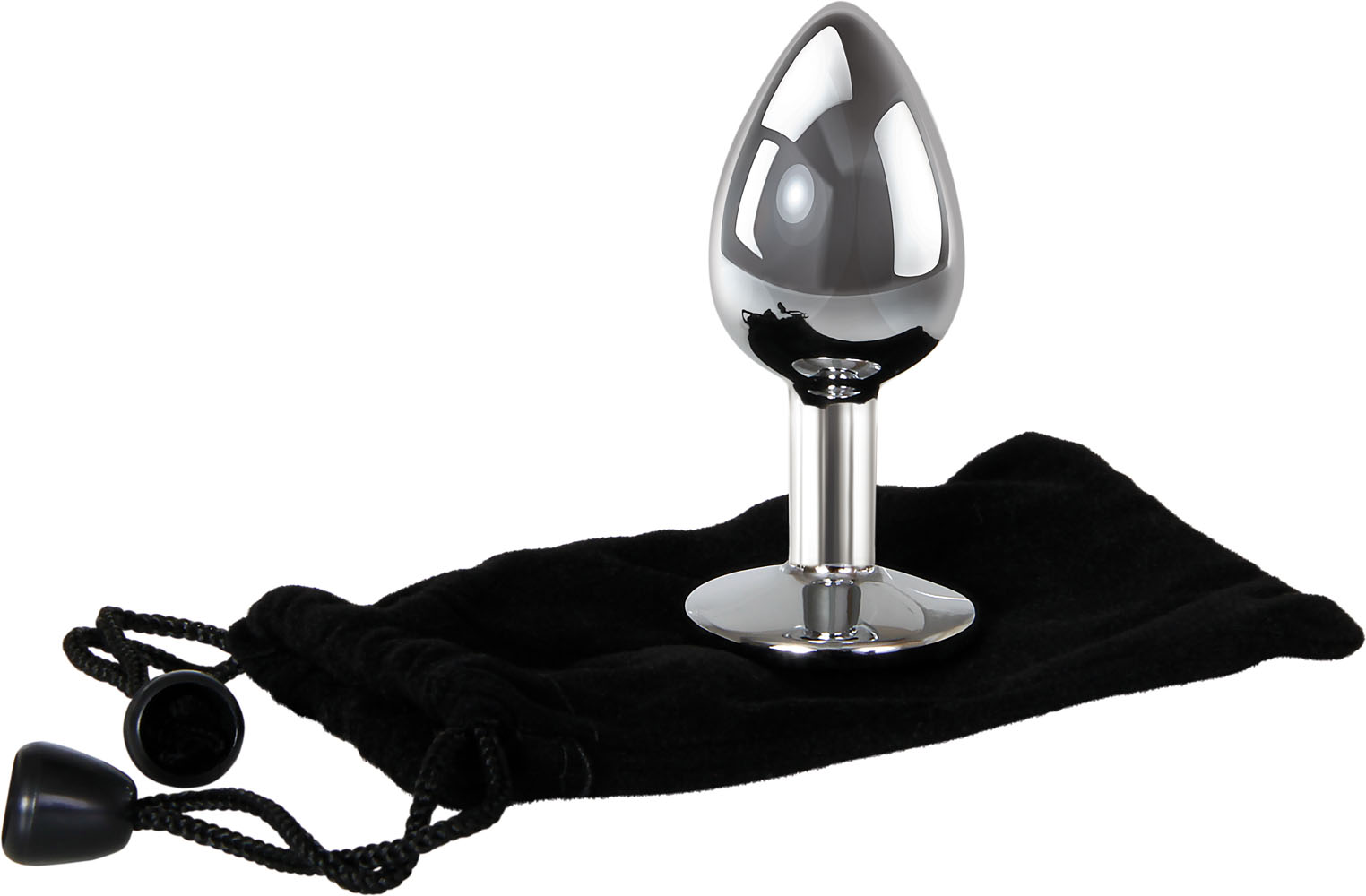 Experience the intense, targeted stimulation that you can only get with the weight & feel of polished aluminum. This small-sized plug is perfect for begginners or advanced players who crave a body-safe toy that can alse be warmed or chilled for exhilarating temperature play. The flared safety base provides effortless navigation. A sparkling pink jewel sets a playful mood! Its nonporous surface sanitizes to perfection with Adam & Eve toy cleaner and a warm water rinse. A black velvet drawstring bag is included for discreet travel or storage.
